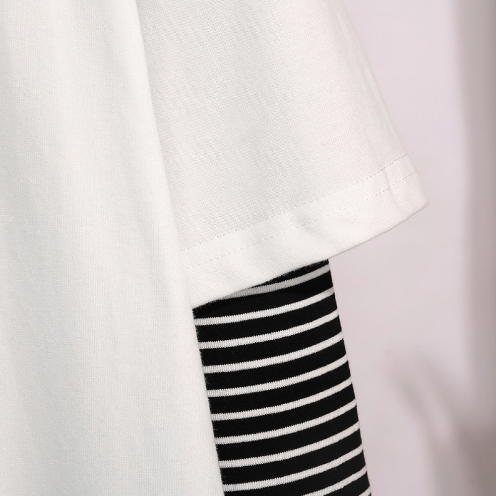 Fashion Tops Plus Size Women's Striped Stitching Printing Long-Sleeved T-Shirt Women