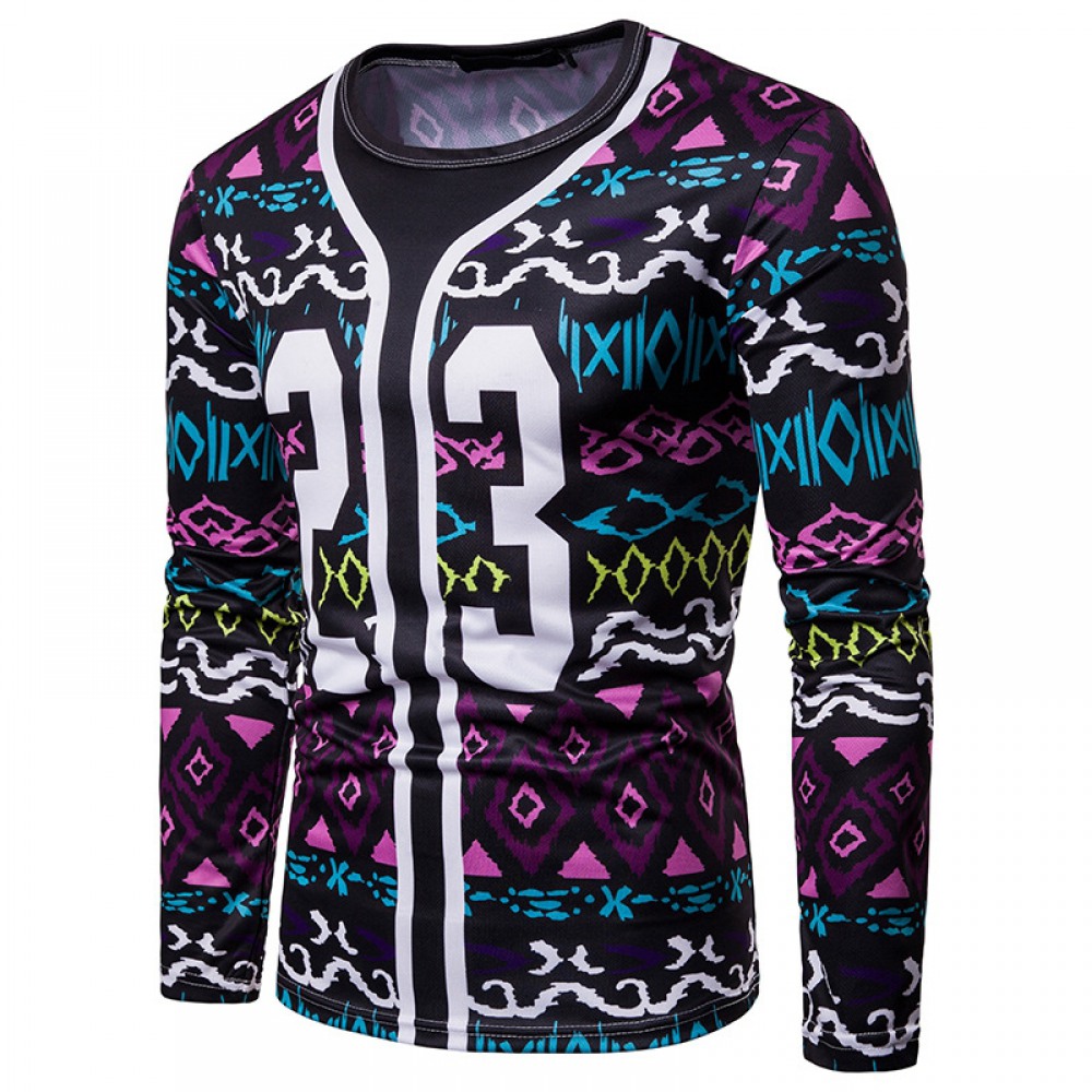Men's Letter Printing Round Neck Long-Sleeved T-Shirt