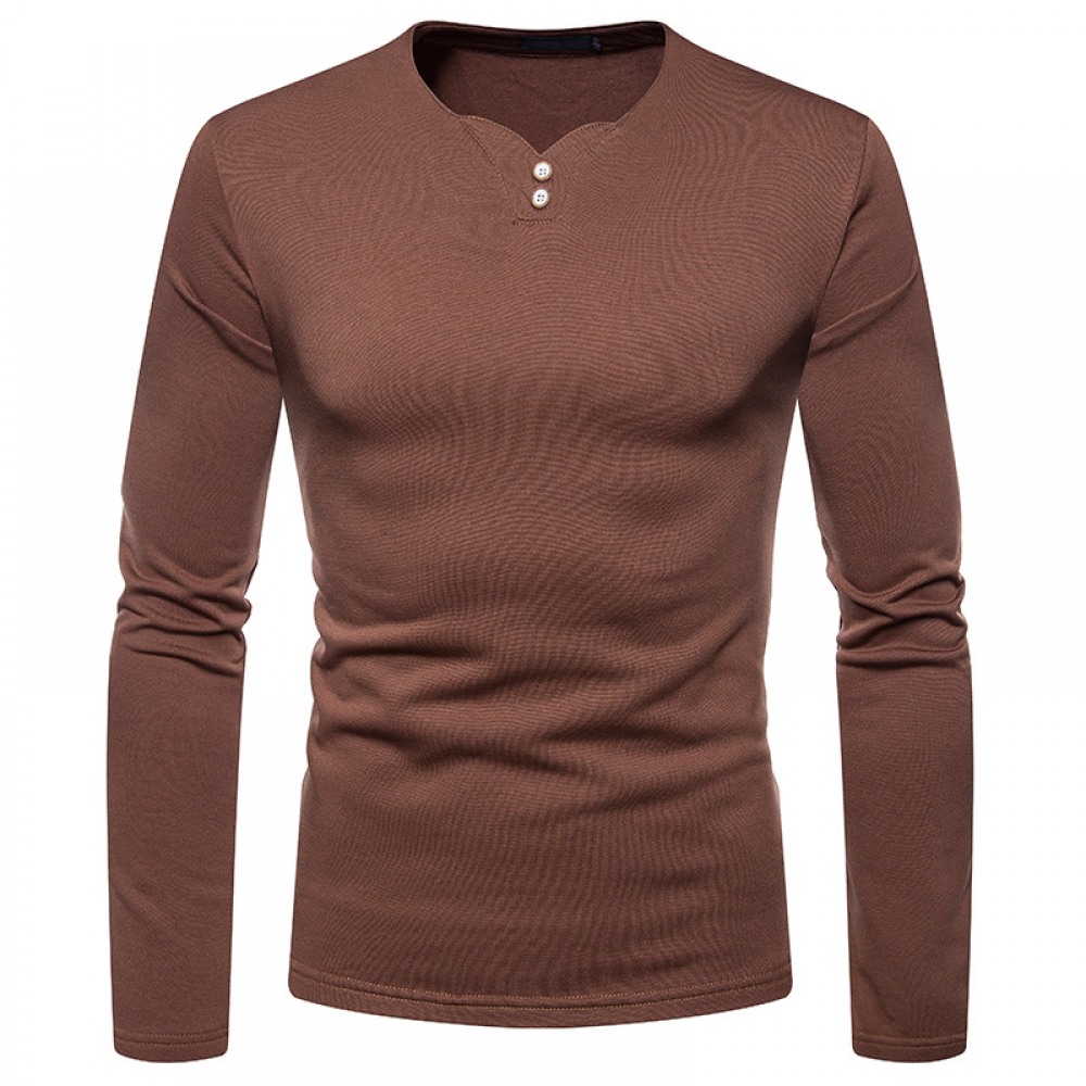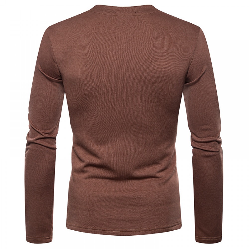 Men's Plus Size Plus Velvet Warm Henley Collar Long-Sleeved T-Shirt Bottoming Shirt