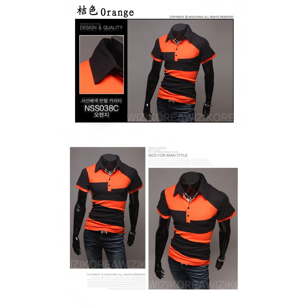 Contrast Color Block Lapel Polo Shirt Slim Fit T-Shirt