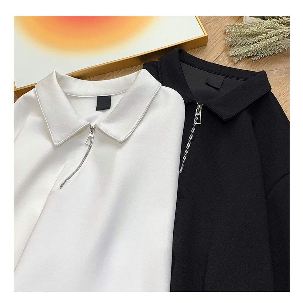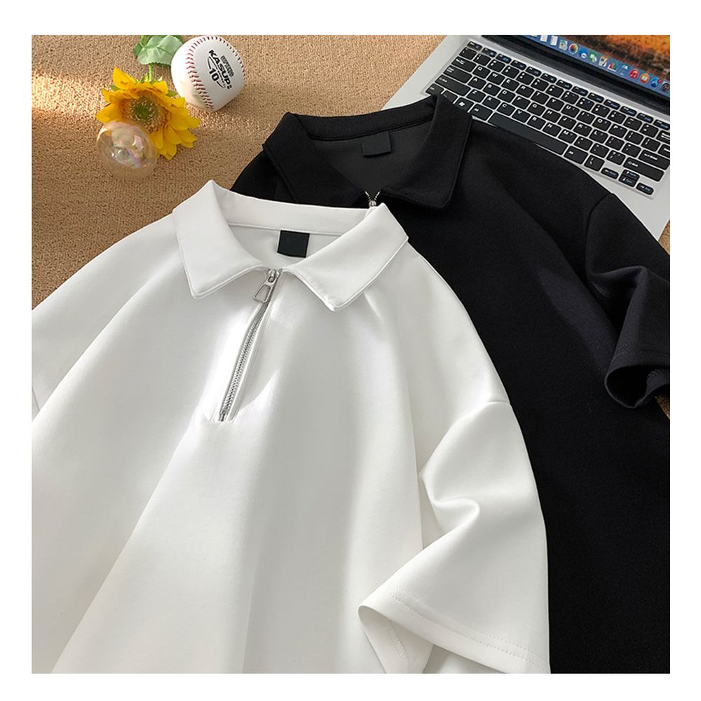 Men's Solid Color Half Zip Short Sleeve Polo Shirt Summer