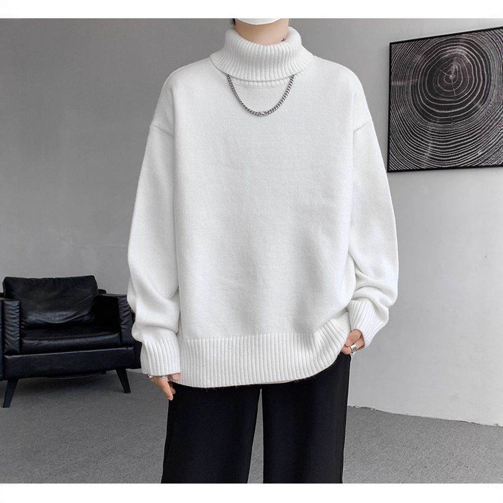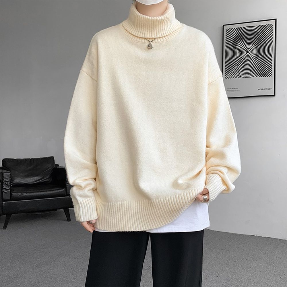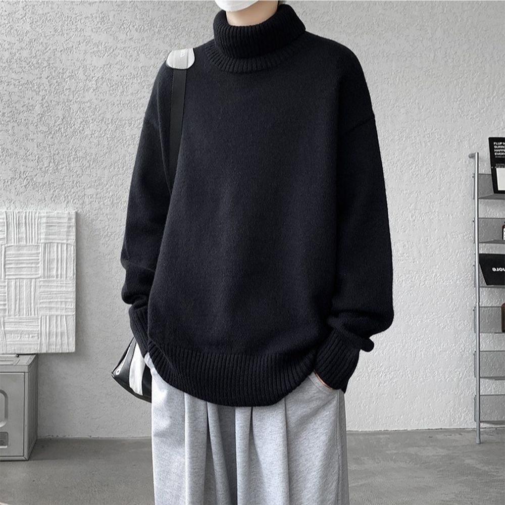 Men's Turtleneck Sweater Relaxed Style Thick and Loose Wool Sweater