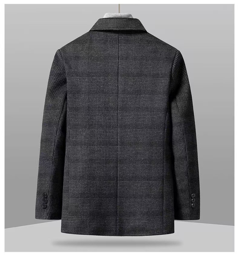 Men's Warm Lined Lapel Casual Plaid Wool Coat