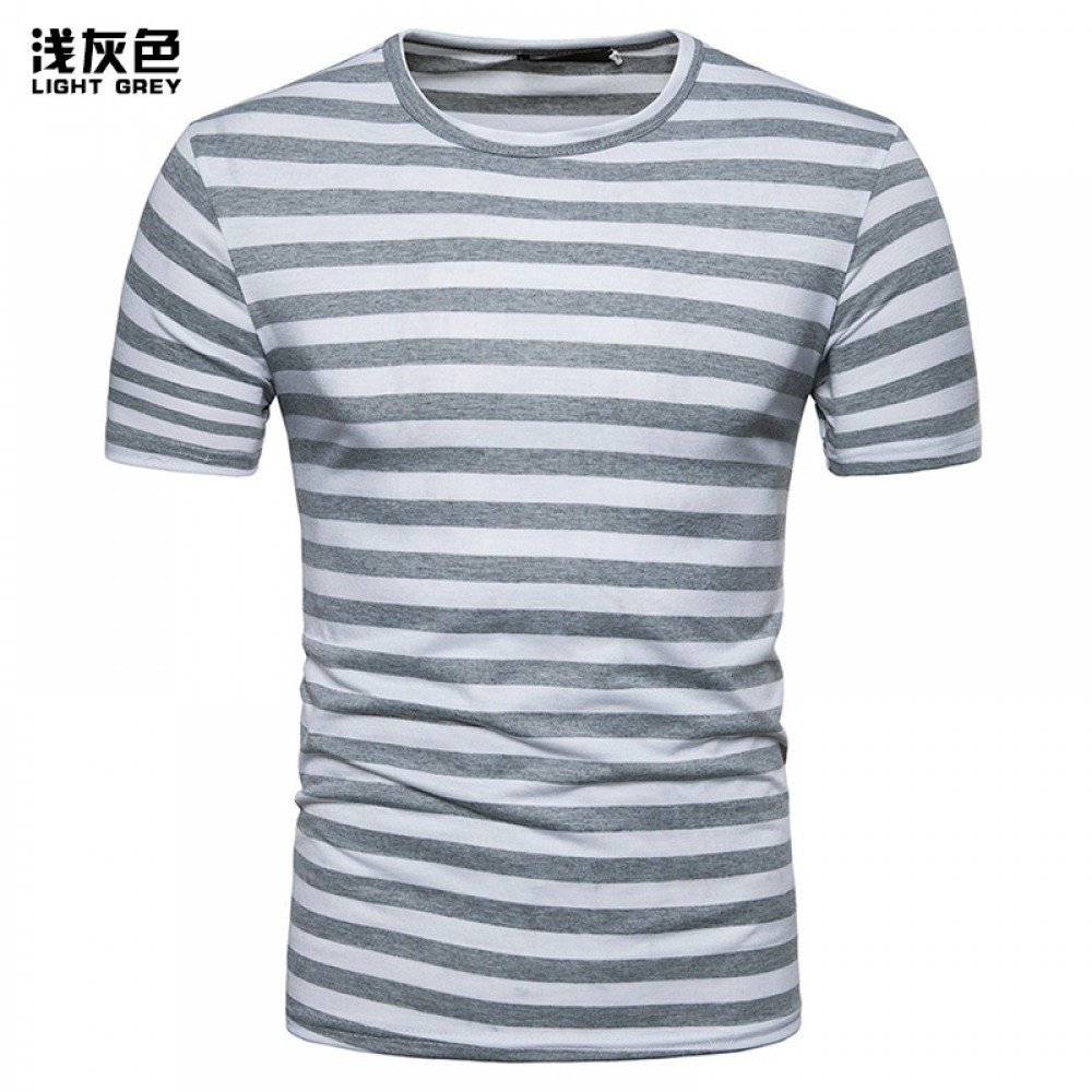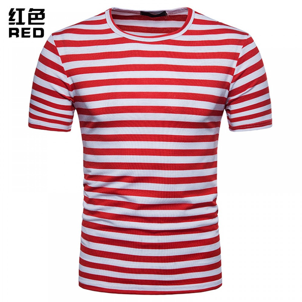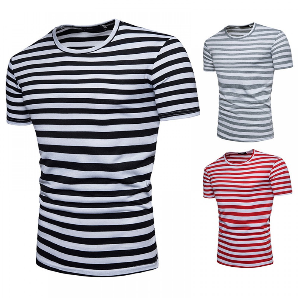 New Summer Men's Short-Sleeved T-Shirt Men's Contrast Striped Slim Casual T-Shirt