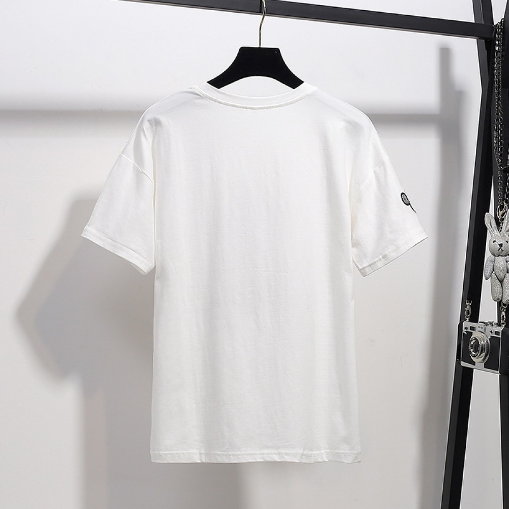 New Summer Plus Size Women's Slimming Top Fat Cartoon Embroidered Loose Short Sleeve T-Shirt