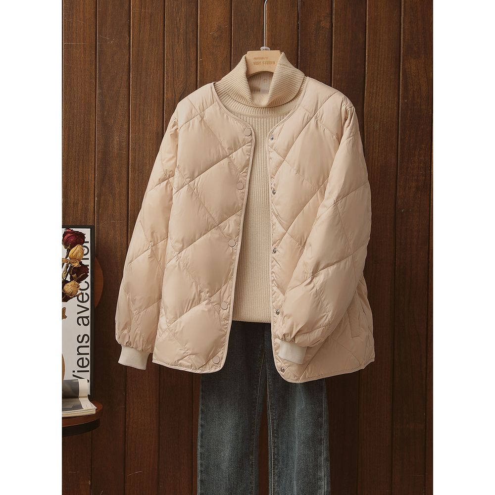 Women's Short Down Jacket Round Neck Loose Casual Coat