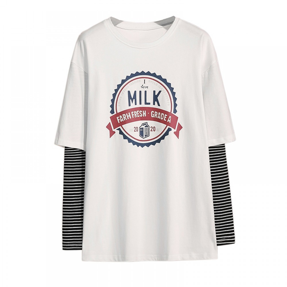 Fashion Tops Plus Size Women's Striped Stitching Printing Long-Sleeved T-Shirt Women