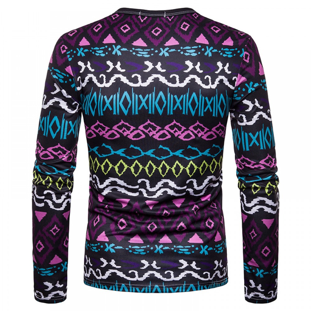 New Men's Large Size 3D Retro Playing Cards Floral Print High Neck Long Sleeve T-Shirt Bottoming Shirt