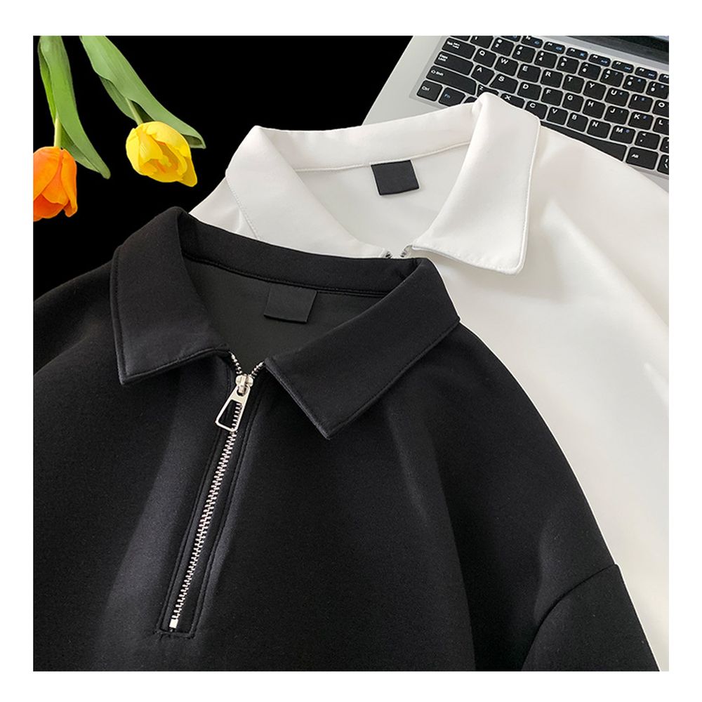 Men's Solid Color Half Zip Short Sleeve Polo Shirt Summer