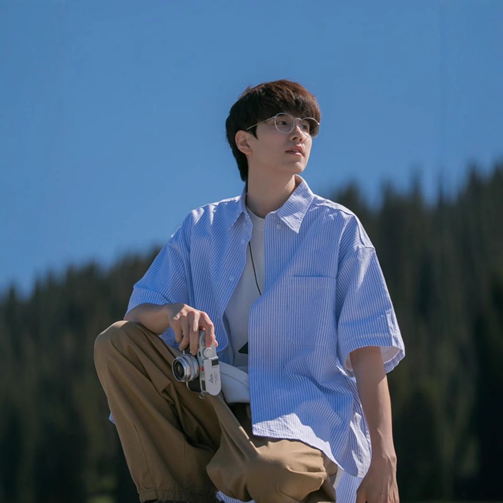 Men's Short-sleeved Shirt Thin Solid Color Casual Top