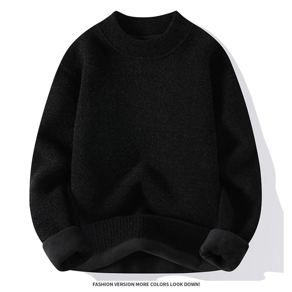 Men's Turtleneck Sweater Fleece-lined Thickened Solid Color Warm Knitted Base Layer