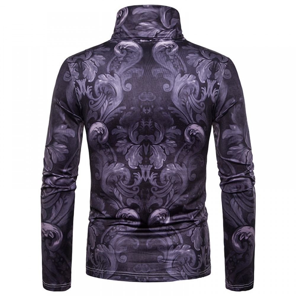 New Men's Large Size 3D Retro Castle Print High Neck Long Sleeve T-Shirt Bottoming Shirt