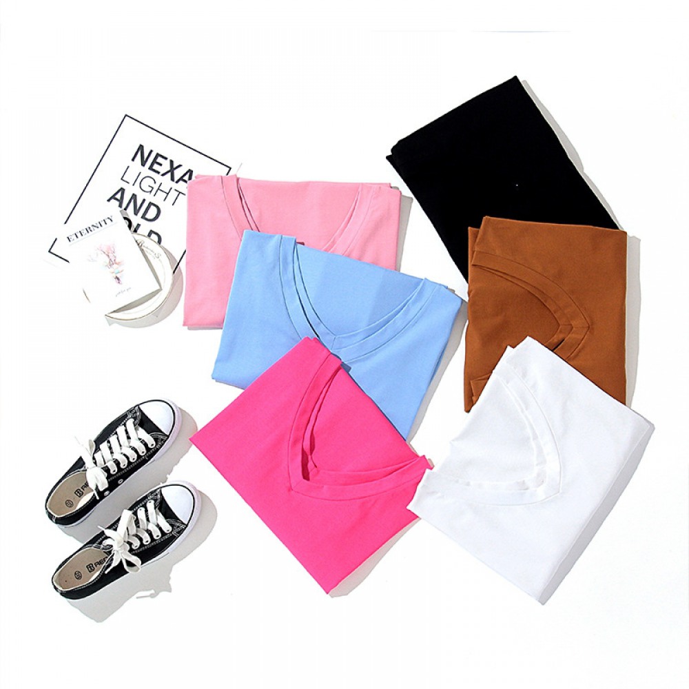 Plus Size Women's Fat Summer New Solid Color Basic V-Neck Short-Sleeved T-Shirt Women